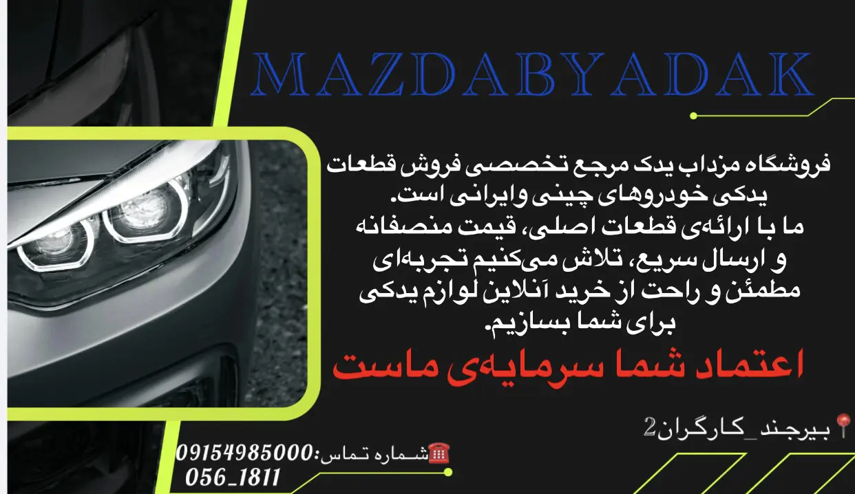 مزداب یدک واقعا یکی از بهترین فروشگاههای اینترنتی برای تجهیزات روز هست. چیزی که باعث شد اینجا رو انتخاب کنم، ترکیب تنوع محصول، پشتیبانی عالی و ارسال سریع بود. محصولی که خریدم از هر نظر عالی بود و حتی بهتر از چیزی که فکر میکردم جواب داد. با توجه به تجربهی خوبی که داشتم، مطمئنا خریدهای بعدی هم از همین فروشگاه انجام میدم